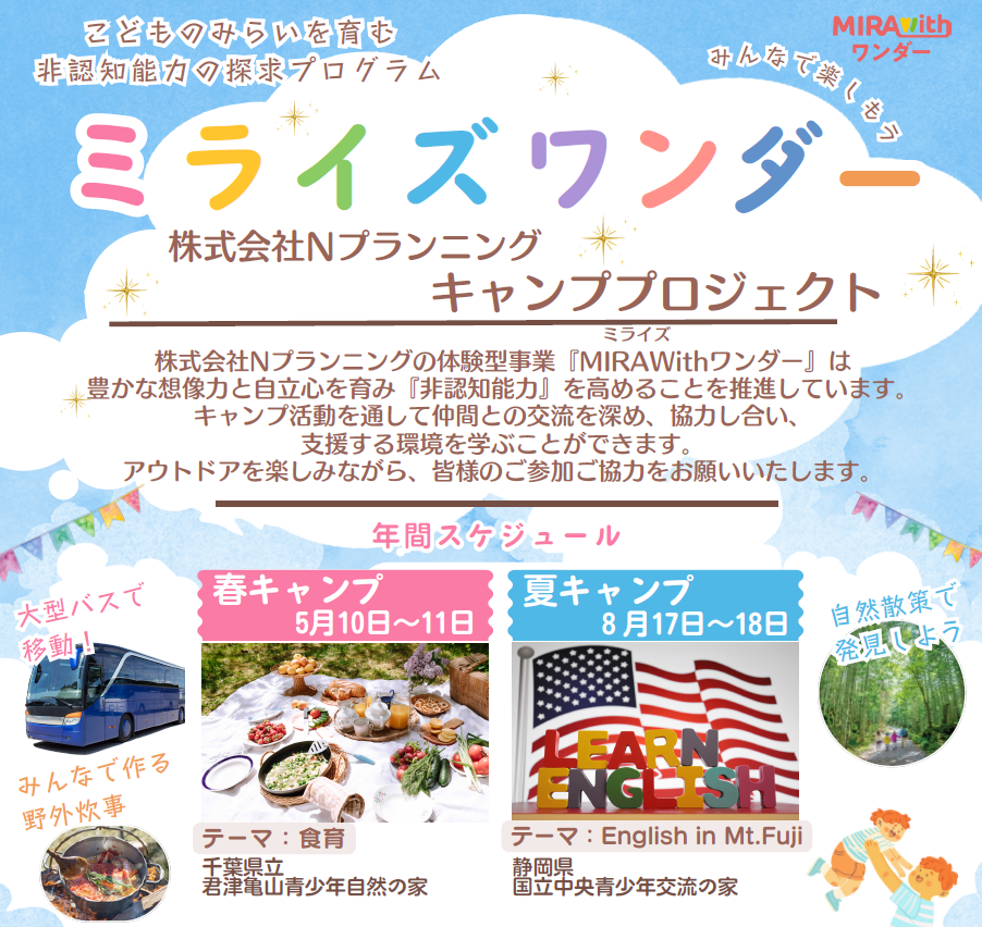 Nプランニングは、その理念に共感し、2024年度より自然体験・宿泊体験を中心としたキャンプ運営の一部を受託。